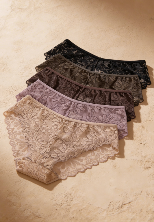 Zestaw 5 szt. figi majtki damskie bawełniane koronkowe w modnych kolorach