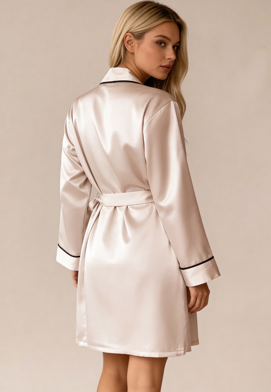 Szampański zestaw piżamowy damski satynowy na ramiączkach z szortami i szlafrokiem