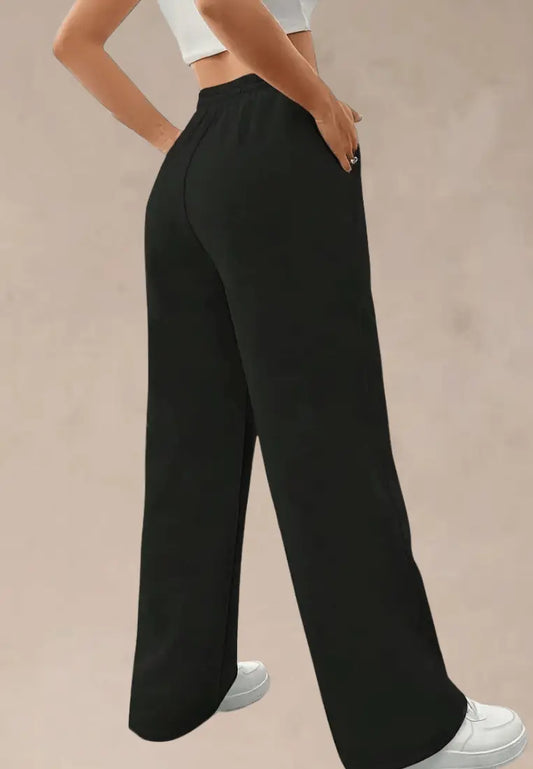 Czarne spodnie dresowe damskie z szerokimi nogawkami i gumką