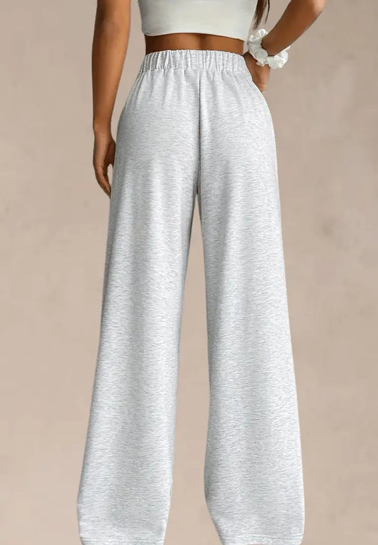 Szare spodnie dresowe damskie z szerokimi nogawkami i gumką w pasie