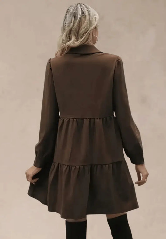 Brązowa koszulowa sukienka z guzikami i rozkloszowanym dołem