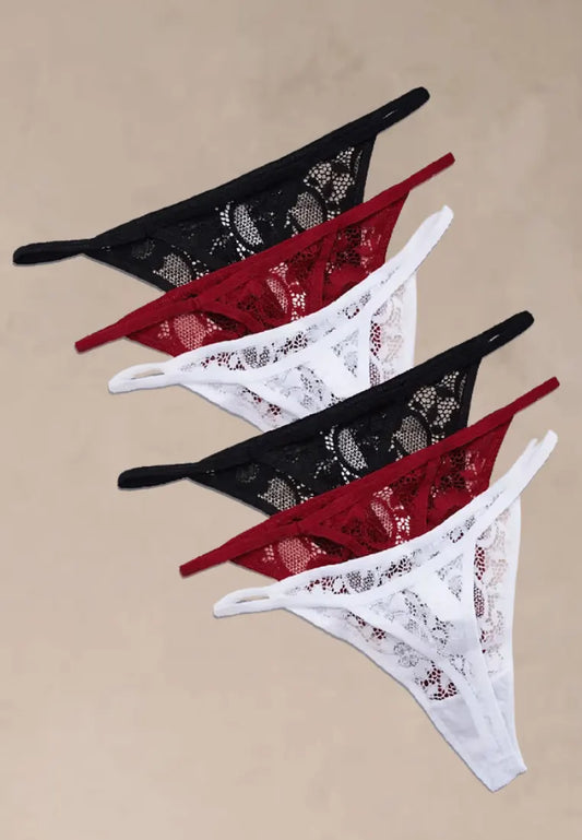 Zestaw 6 szt. stringi majtki damskie koronkowe bawełniane czarne, białe i czerwone