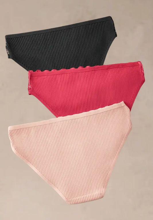 Zestaw 3 szt. figi majtki damskie koronkowe bawełniane czarne, czerwone i pudrowe