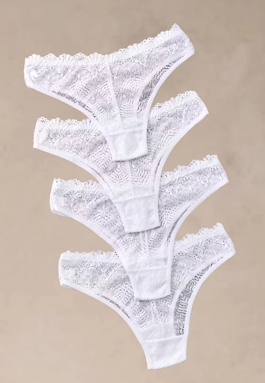 Nowy rok -68%Zestaw 4 szt. stringi majtki damskie koronkowe białe