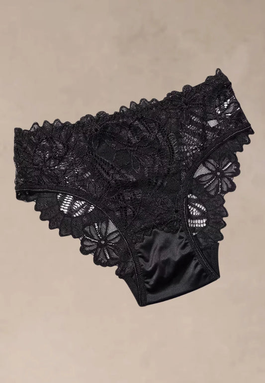 Zestaw 3 szt. figi majtki damskie koronkowe satynowe czarne i beżowe