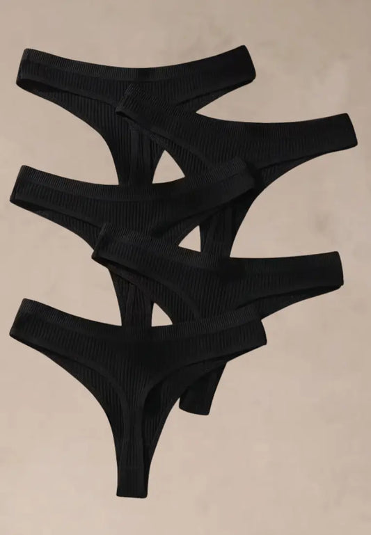 Zestaw 5 szt. stringi majtki damskie bawełniane prążkowane czarne