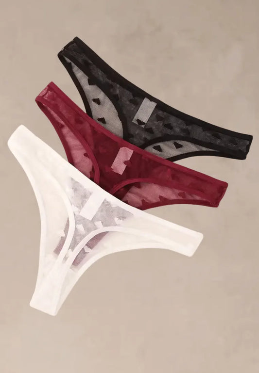 Zestaw 3 szt. stringi majtki damskie koronkowe bawełniane czarne, czerwone i białe