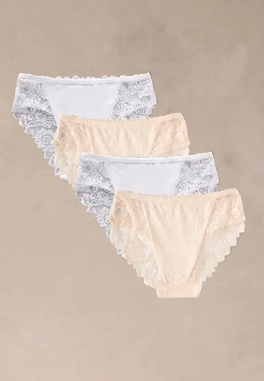 Zestaw 4 szt. figi majtki damskie koronkowe bawełniane białe i beżowe