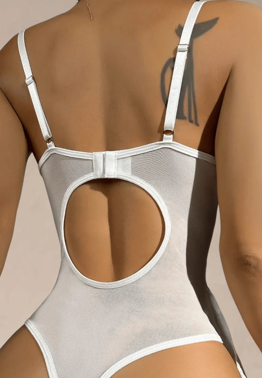 Czarne body damskie koronkowe z głębokim dekoltem i siateczkowym tyłem