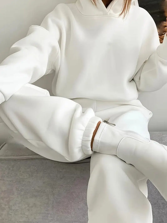 Damski dres z kapturem i spodniami jogger Biały