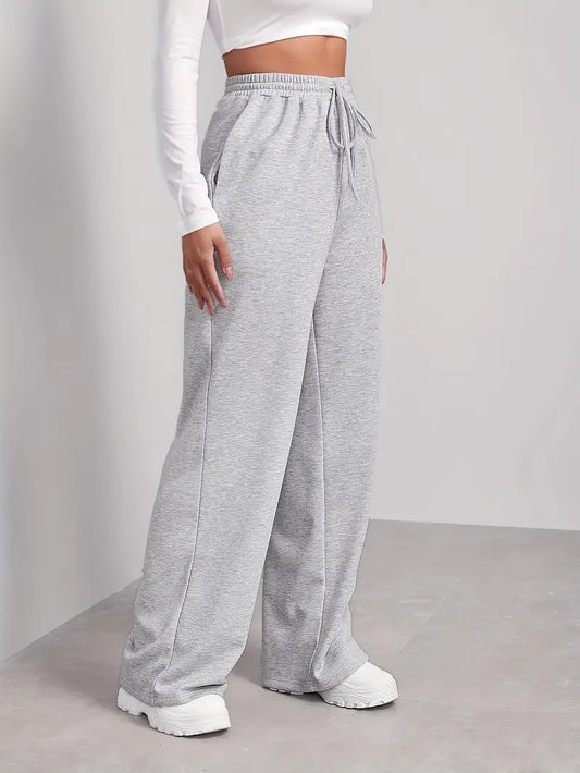 Szare dresowe spodnie damskie z szeroką nogawką i wysokim stanem