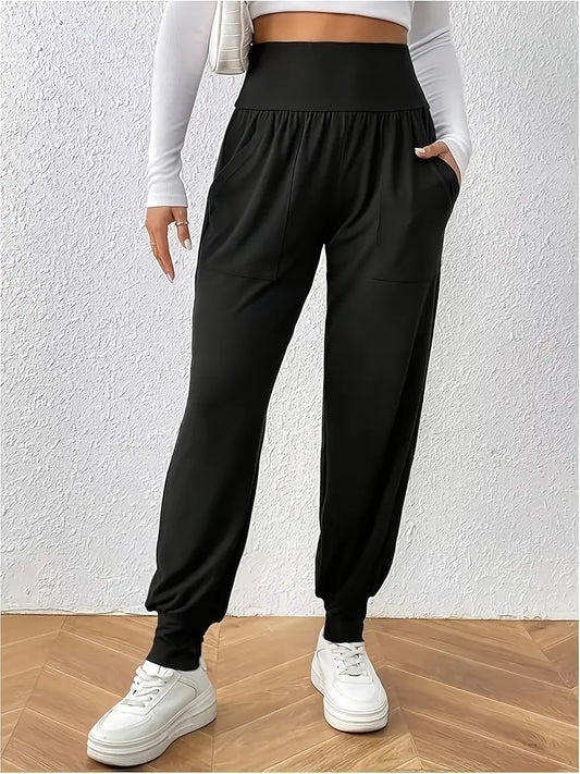 Czarne damskie spodnie dresowe z wysokim stanem i kieszeniami