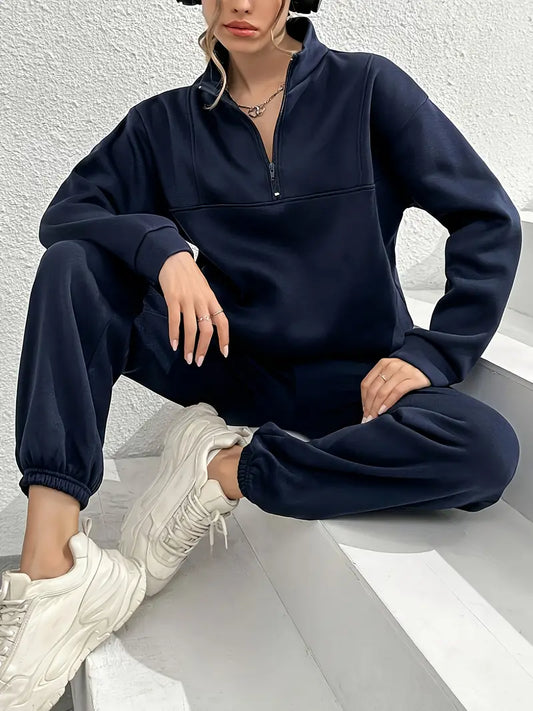 Granatowy damski dres z golfem i zamkiem pod szyją
