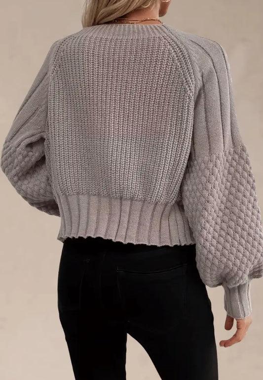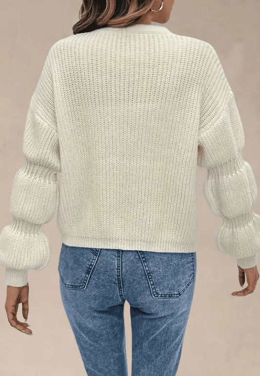 Beżowy kardigan damski z guzikami krótki fason ozdobny splot