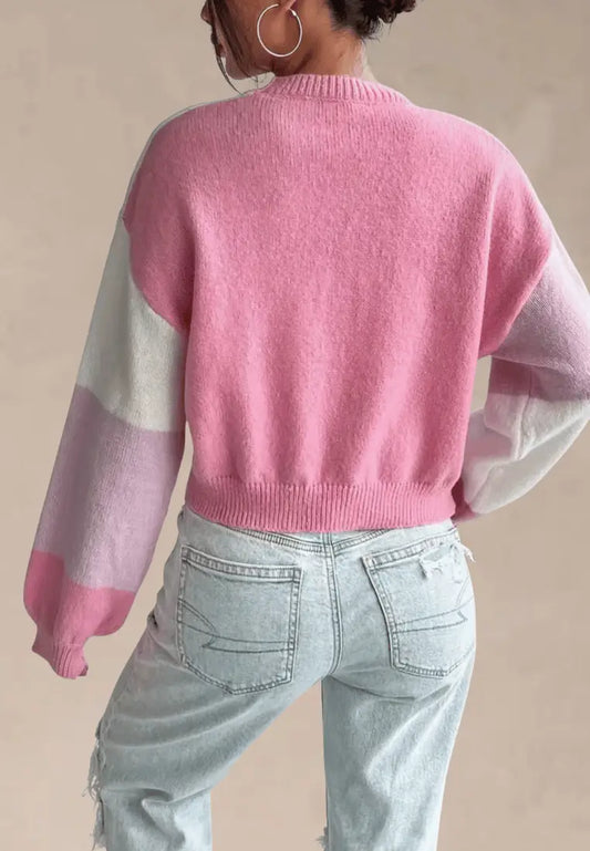 Różowy kardigan damski krótki fason miękka dzianina bez zapięcia