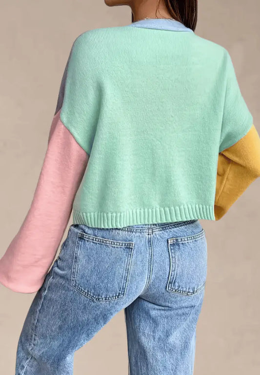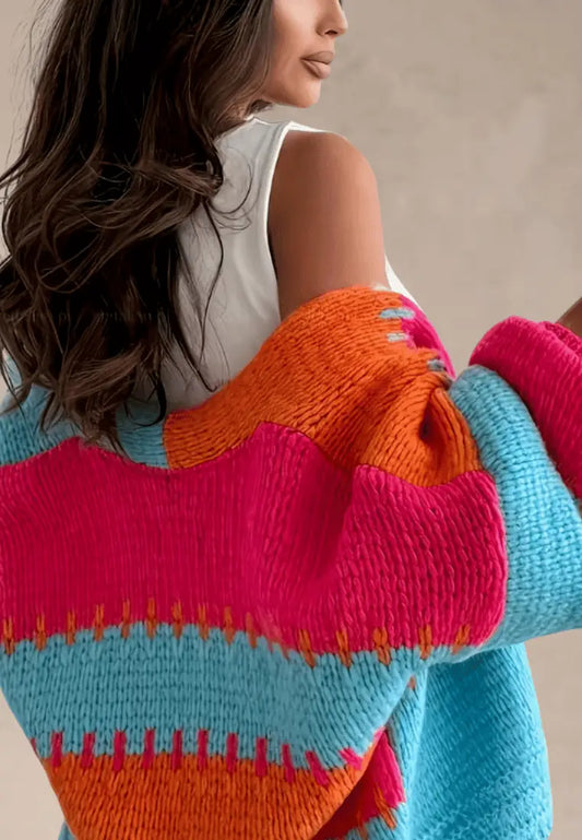 Wielokolorowy kardigan damski oversize z miękkiej dzianiny