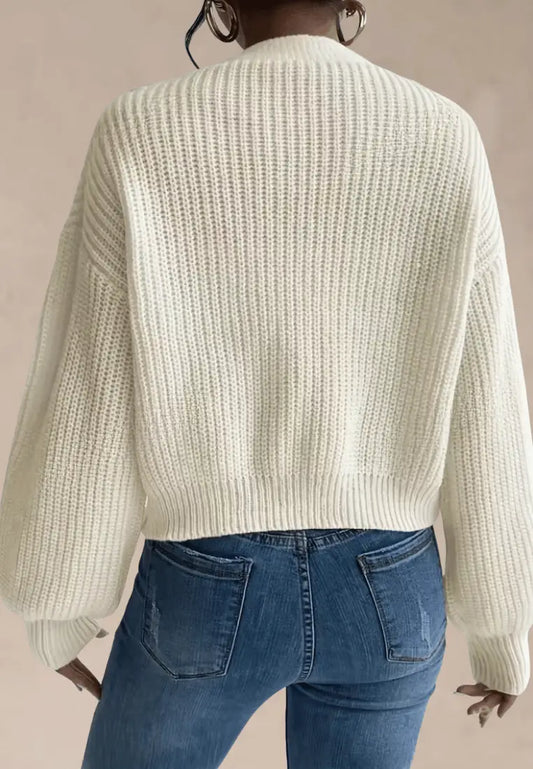 Biały kardigan damski prążkowany krótki fason zapinany na guziki