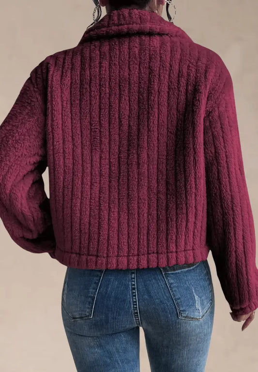 Bordowa kurtka damska polarowa oversize z guzikami do pasa