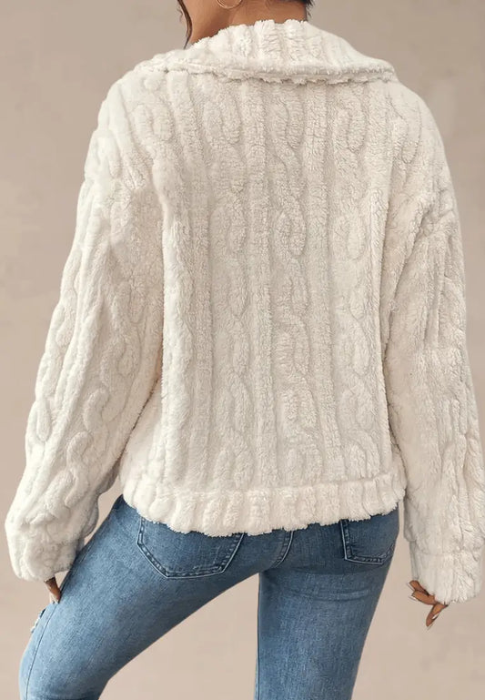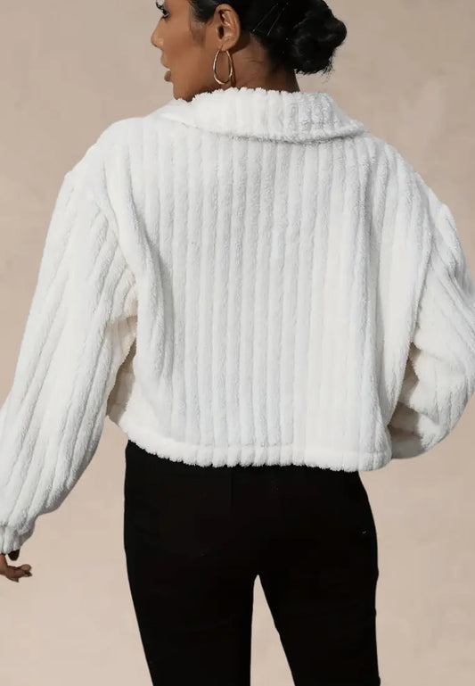 Biała kurtka damska polarowa krótka z guzikami i kieszeniami