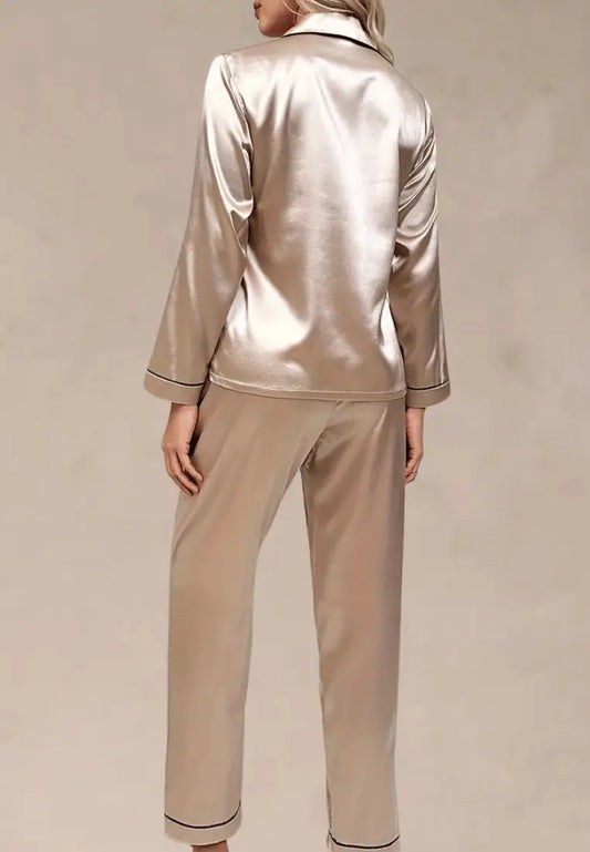 Różowy komplet piżamowy damski satynowy z długim rękawem i długimi spodniami