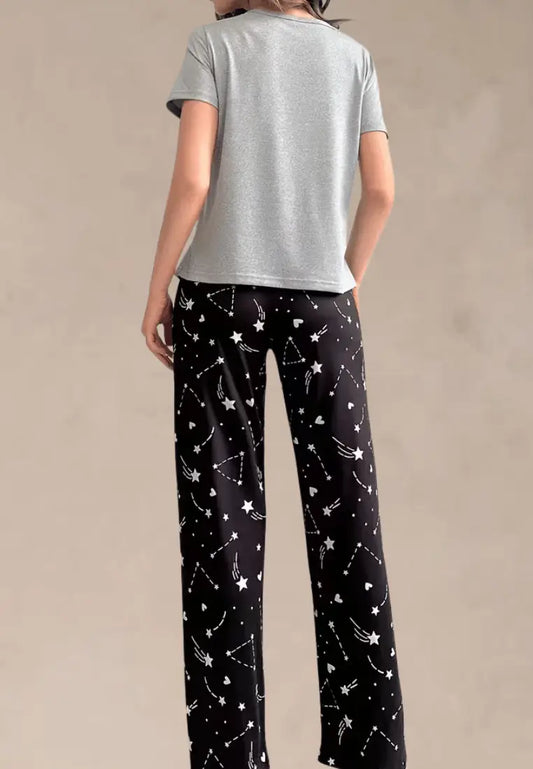 Szary komplet piżamowy damski z krótkim rękawem i długimi spodniami