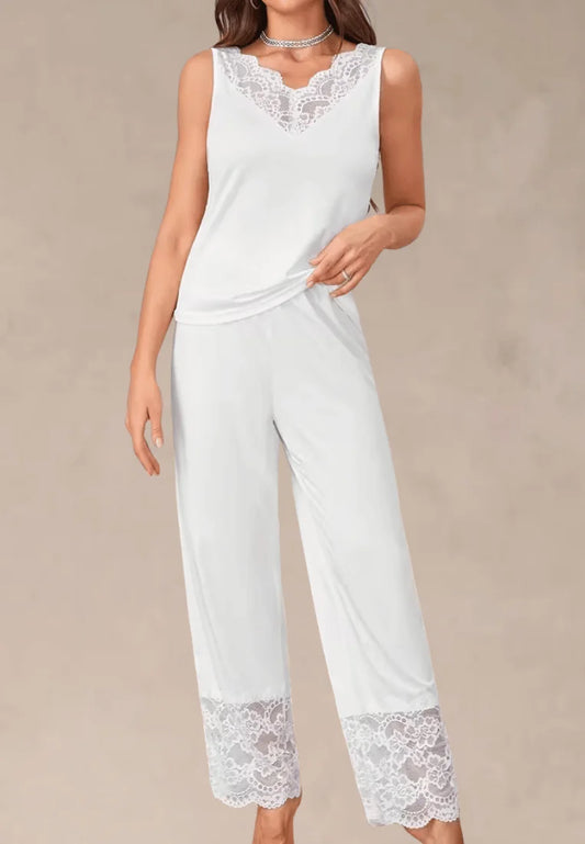Biały komplet piżamowy damski na ramiączkach z długimi spodniami