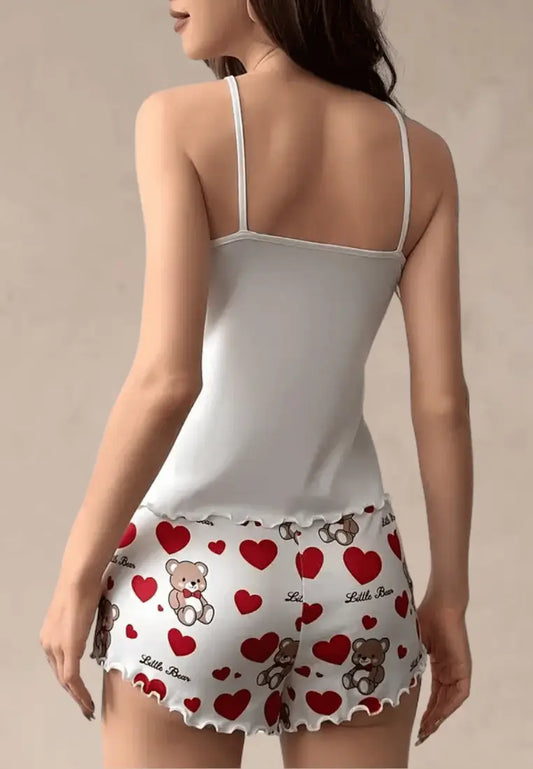 Czerwony komplet piżamowy damski z topem i spodenkami w serca