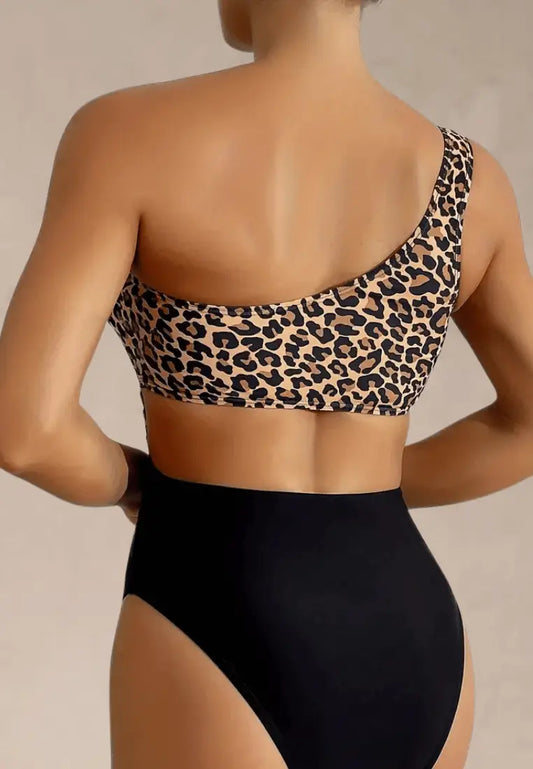 Czarny strój kąpielowy jednoczęściowy damski z panterkowym topem