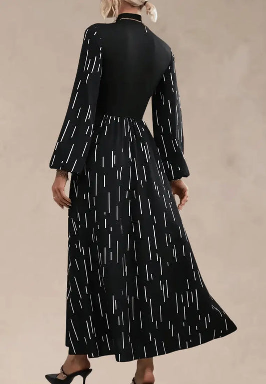 Czarna sukienka maxi z printem i stójką w elegancki fason