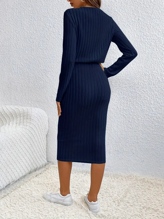 Dzianinowa sukienka mini w prążki w kolorze morskim z długim rękawem