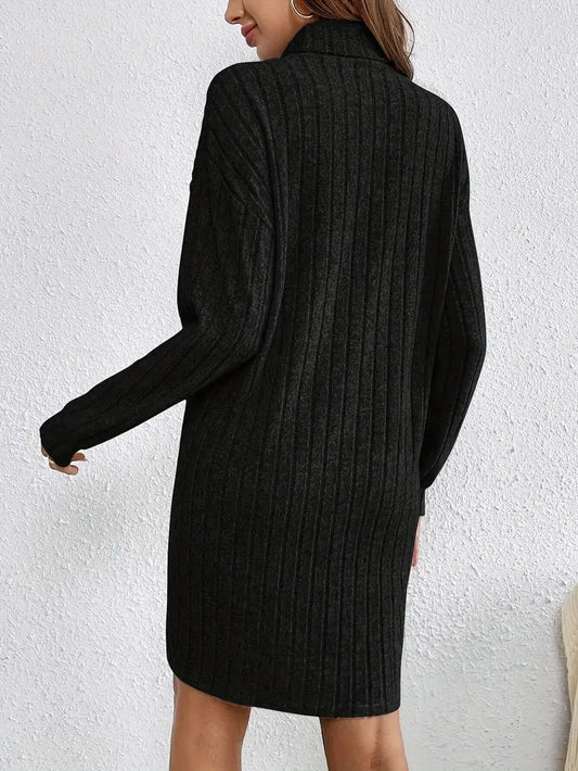 Sukienka swetrowa prążkowana z golfem w kolorze antracytowym