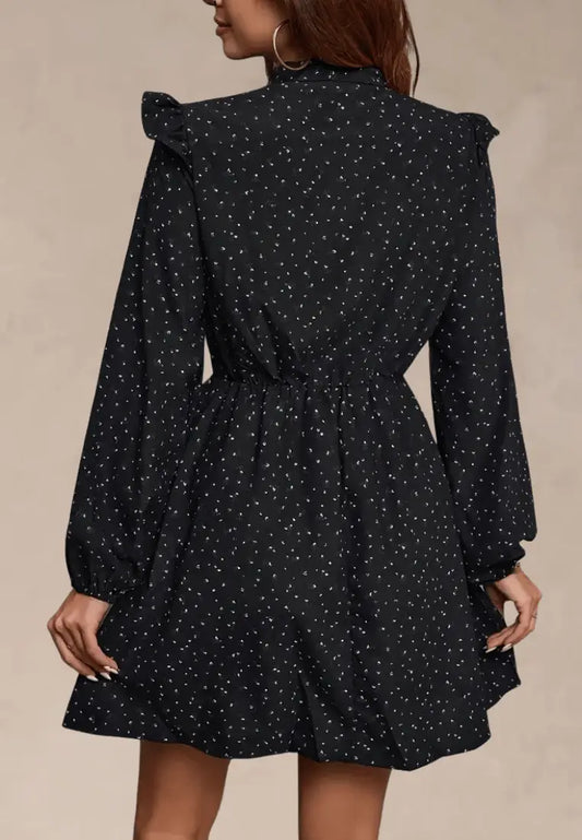 Nowy rok -69%Czarna sukienka z wiązaniem pod szyją i drobnym wzorem
