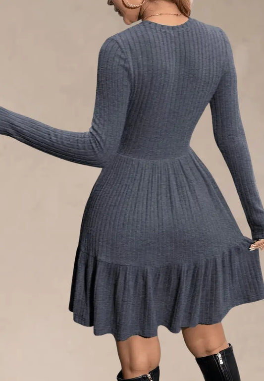 Grafitowa sukienka dzianinowa z rozkloszowanym dołem i rękawem