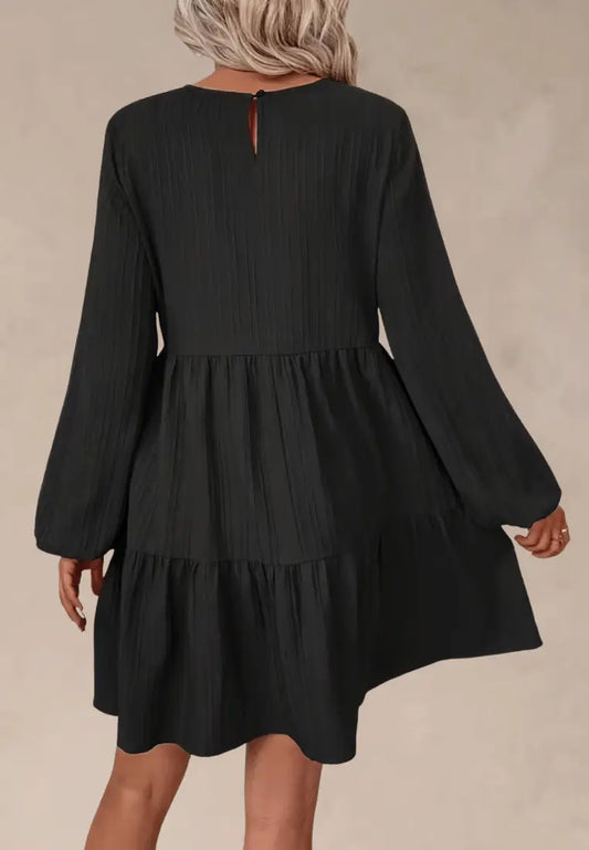 Nowy rok -69%Czarna sukienka z prążkowanej tkaniny z długim rękawem