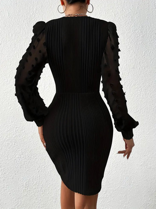 Czarna dopasowana sukienka z transparentnymi rękawami i prążkowaniem