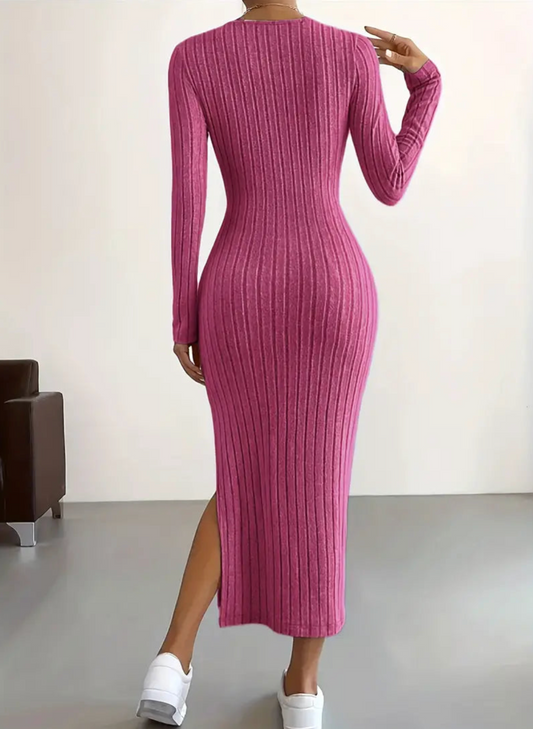 Sukienka damska dzianinowa prążkowana różowa
