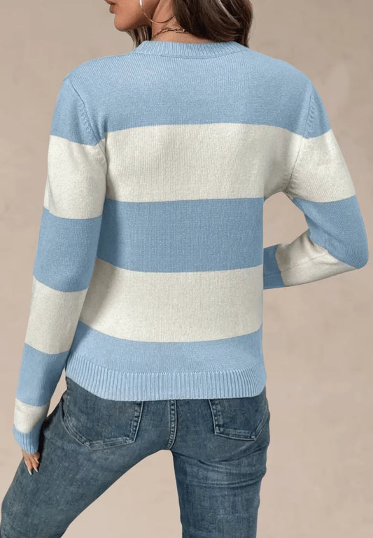 Nowy rok -69%Błękitno-biały sweter damski w poziome pasy