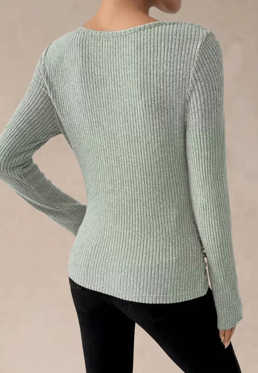 Nowy rok -68%Jasnozielony sweter damski prążkowany z dekoltem woda