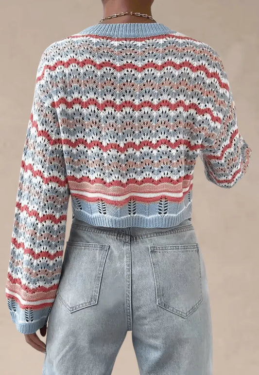 Nowy rok -70%Wielokolorowy sweter damski ażurowy z okrągłym dekoltem