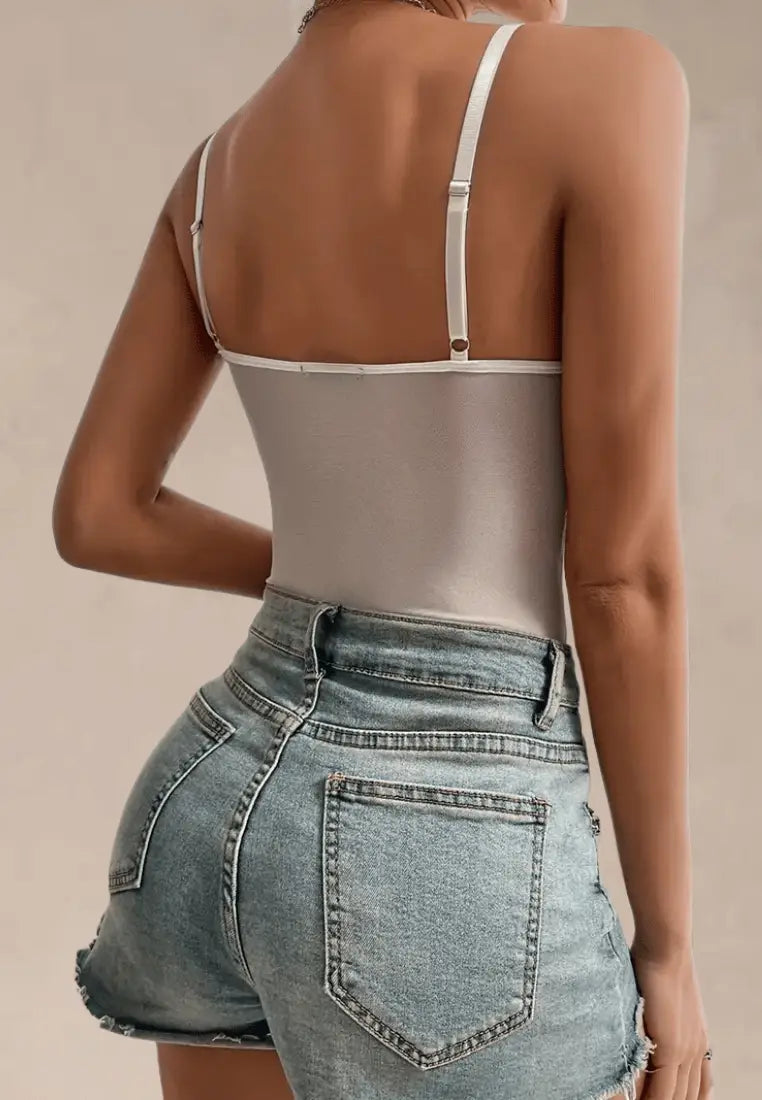 Białe body damskie koronkowe z fiszbinami i podwójnymi ramiączkami
