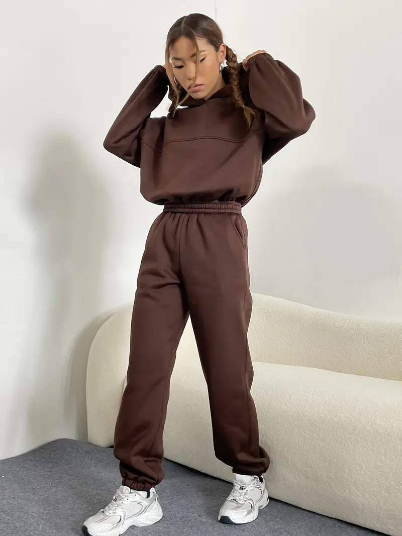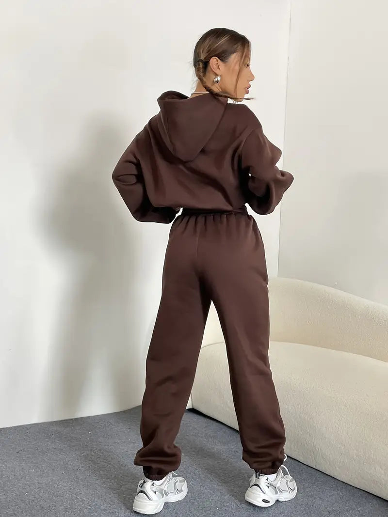 Brązowy damski dres z kapturem i spodniami jogger