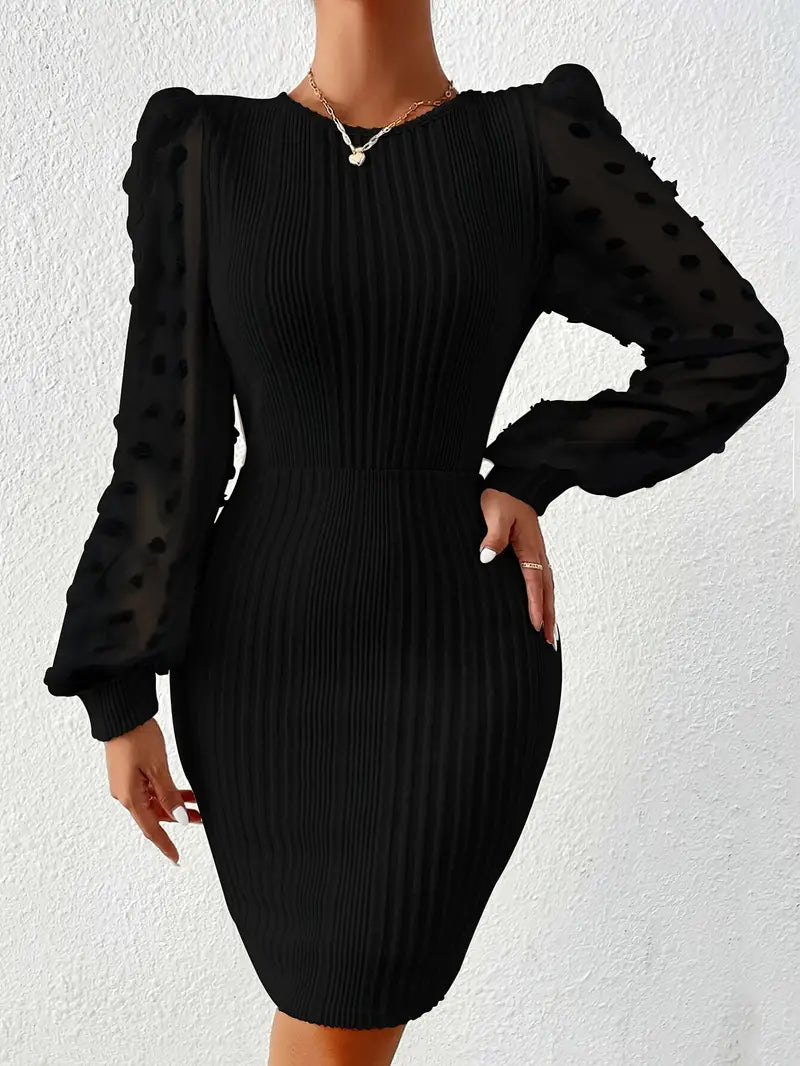 Czarna dopasowana sukienka z transparentnymi rękawami i prążkowaniem
