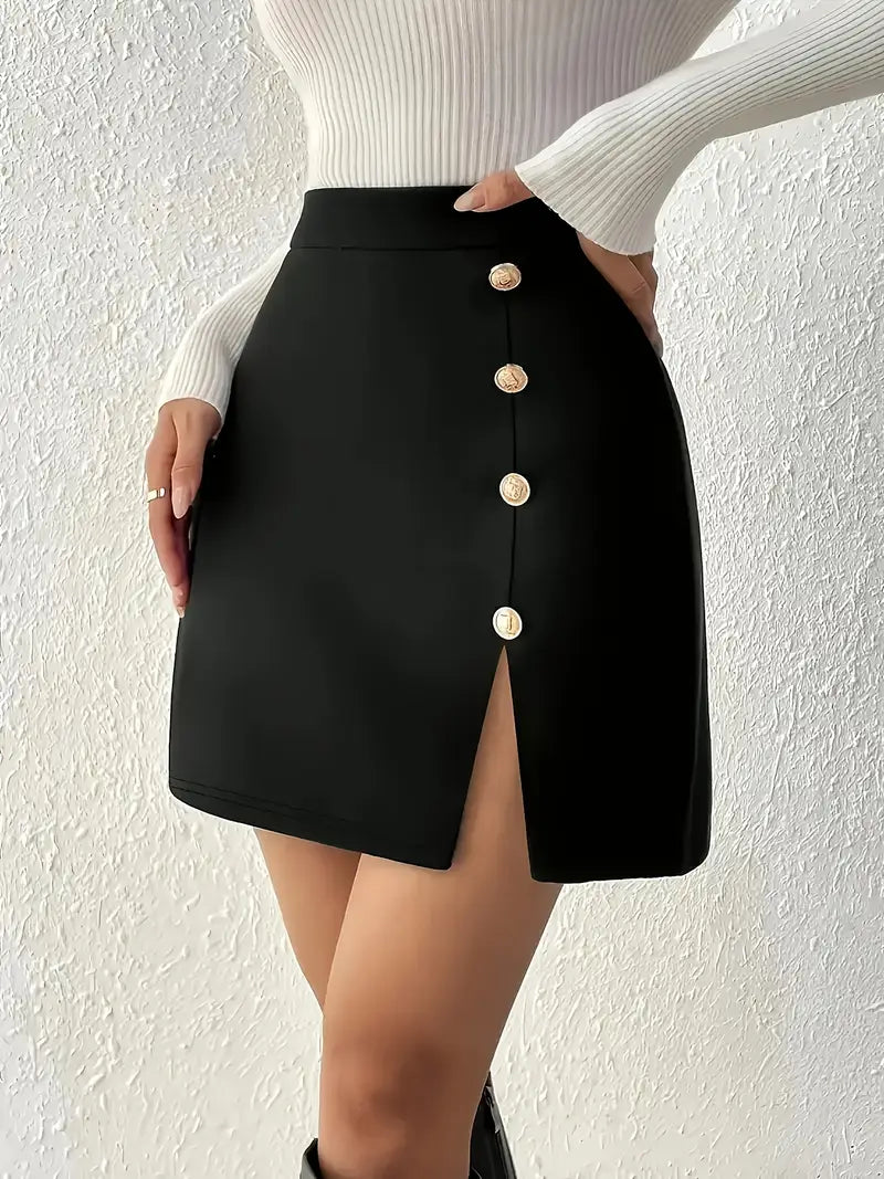 Czarna mini spódnica z rozcięciem i ozdobnymi guzikami