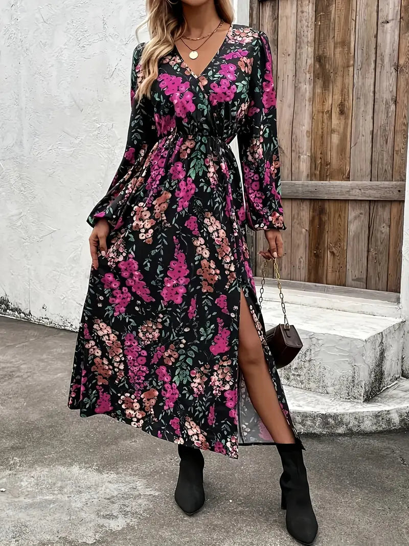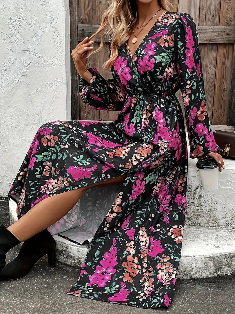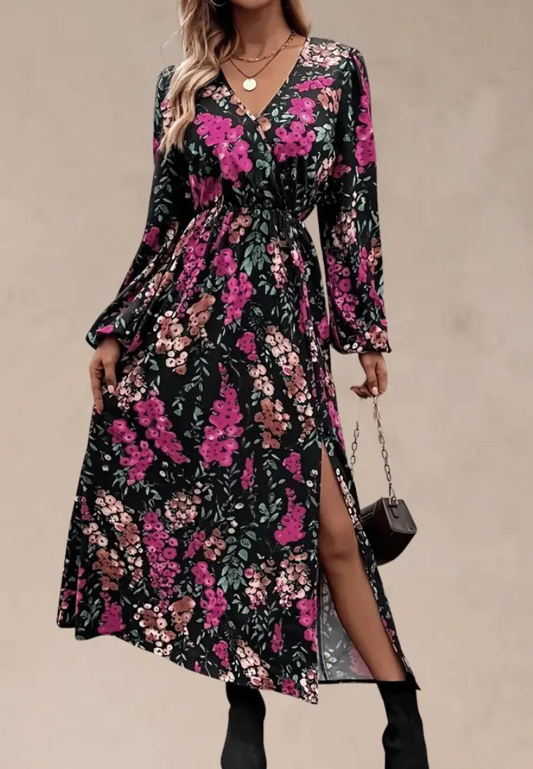 Dzięki elastycznej talii sukienka idealnie dopasowuje się do sylwetki, podkreślając kobiece kształty, a długie rękawy nadają jej uniwersalności – sprawdzi się zarówno w chłodniejsze dni, jak i podczas letnich wieczorów. To doskonały wybór na randki, przyjęcia czy rodzinne uroczystości.
