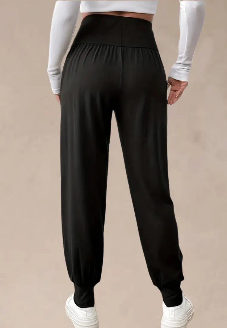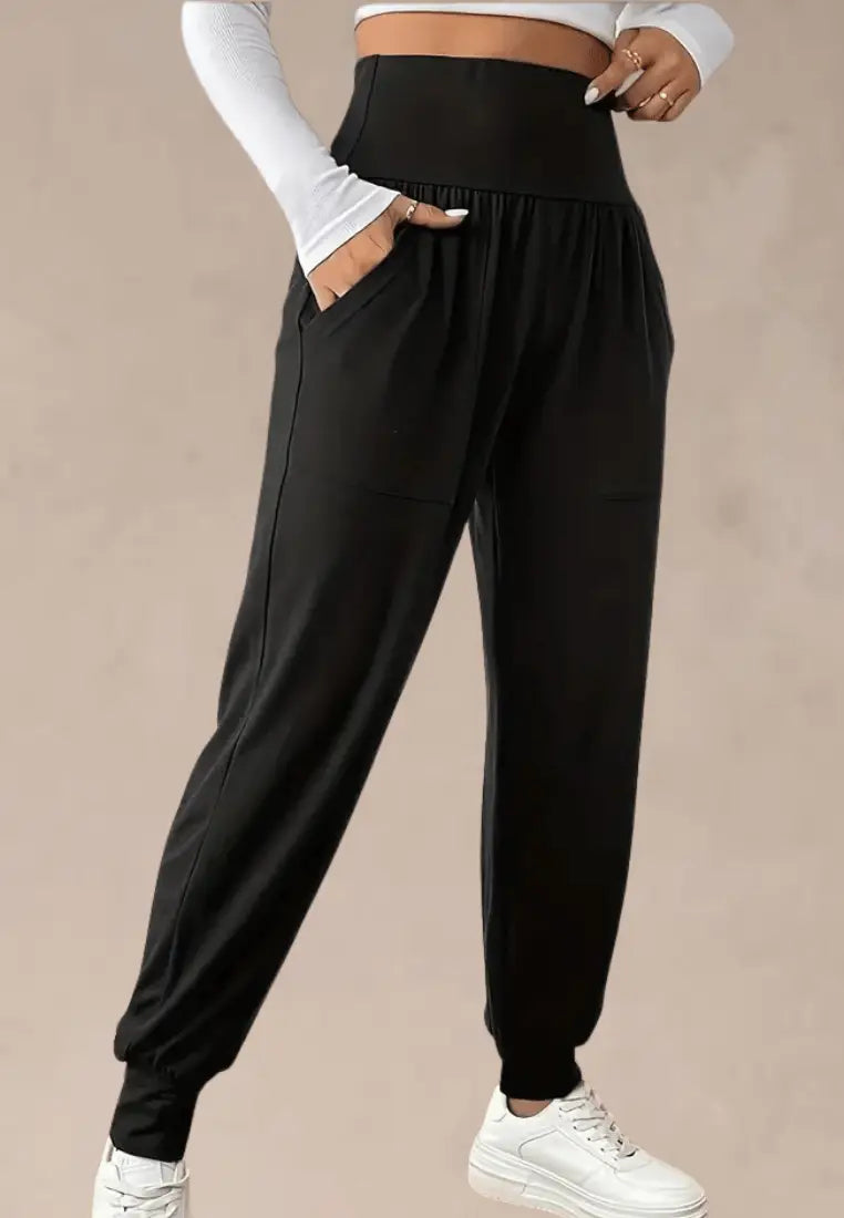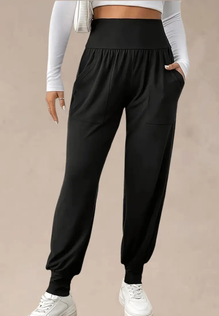 Czarne spodnie dresowe damskie z wysokim stanem i kieszeniami