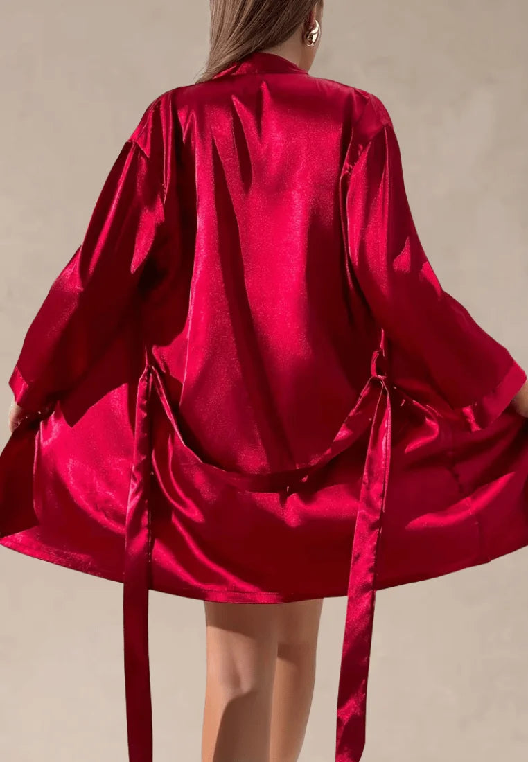 Czerwony zestaw piżamowy damski satynowy z koszulą nocną i szlafrokiem
