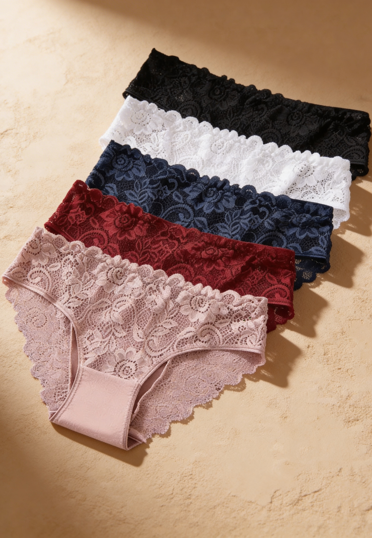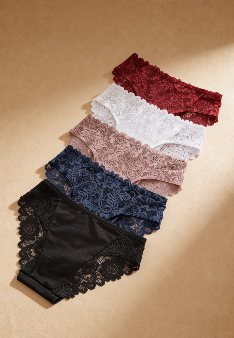 Zestaw obejmuje pięć kolorów — od klasycznej czerni i bieli po głębokie bordo, delikatny pudrowy róż oraz granat. To idealna propozycja dla kobiet, które lubią mieć wybór i dopasować bieliznę do swojego nastroju lub stylizacji. Majtki damskie koronkowe z wysokim stanem – 5-pak mix kolorów to uniwersalny komplet, który sprawdzi się zarówno jako prezent, jak i uzupełnienie domowej kolekcji bielizny.