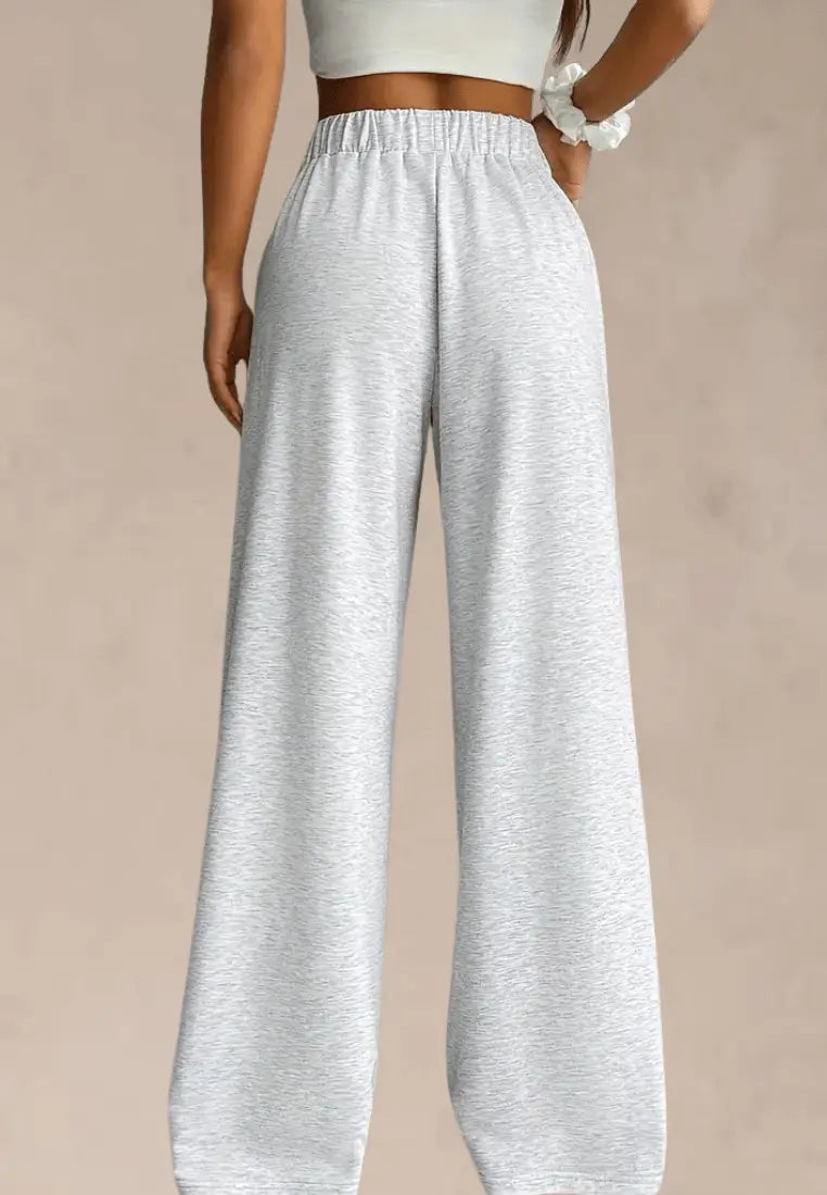 Szare spodnie dresowe damskie z szerokimi nogawkami i gumką w pasie