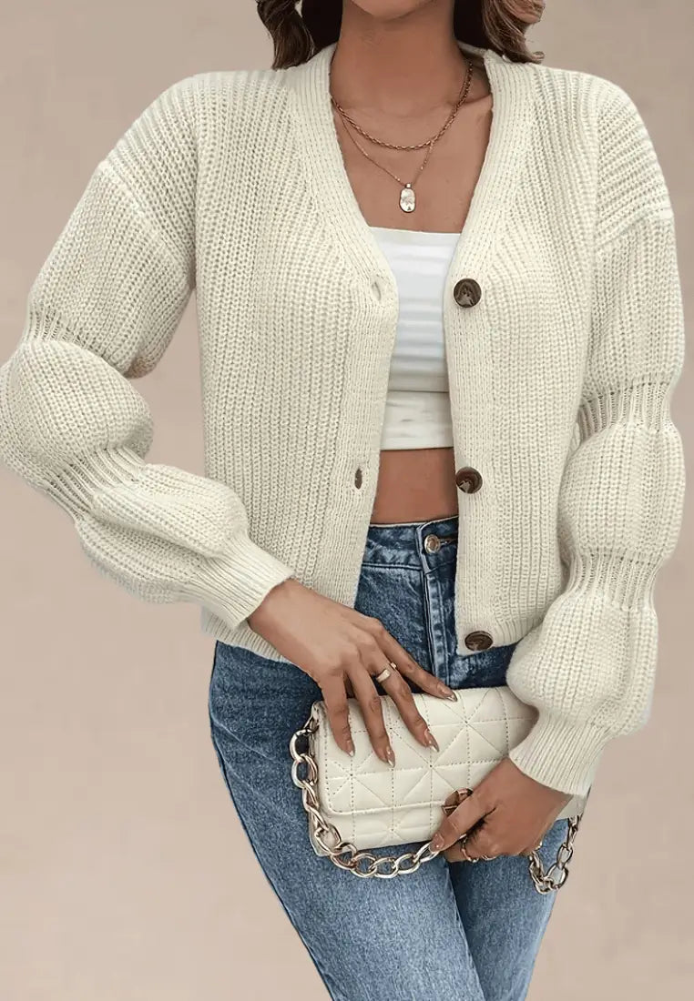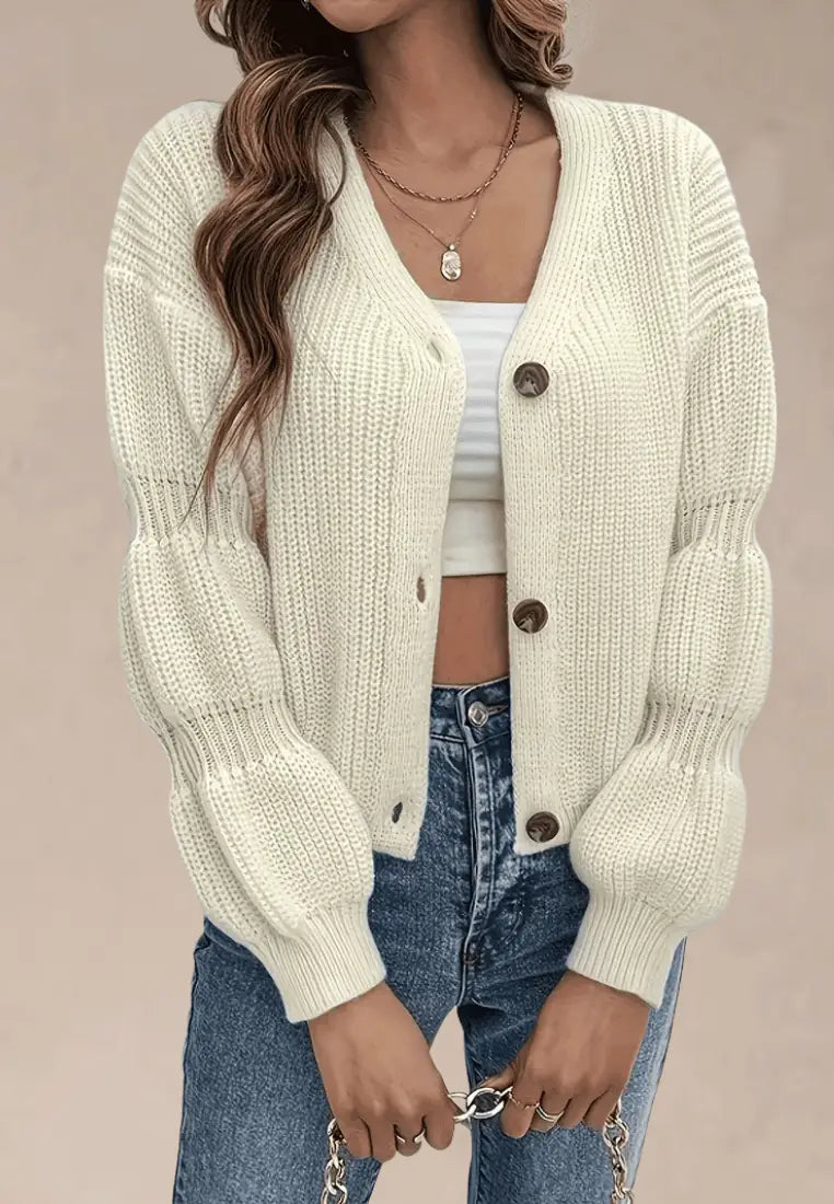Kardigan morelowy z grubym splotem i guzikami