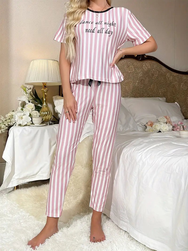 Komplet piżamki w różowe paski z napisem „dance all night”